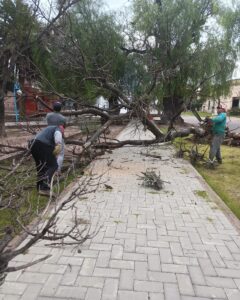 La Municipalidad de Quilino y Villa Quilino, a través del área de Obras Públicas, lleva adelante tareas de poda de seguridad y extracción de ejemplares arbóreos en la Plaza de Villa Quilino.